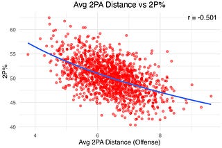 Over the holiday break, we added a new stat to the team page: average 2PA distance.